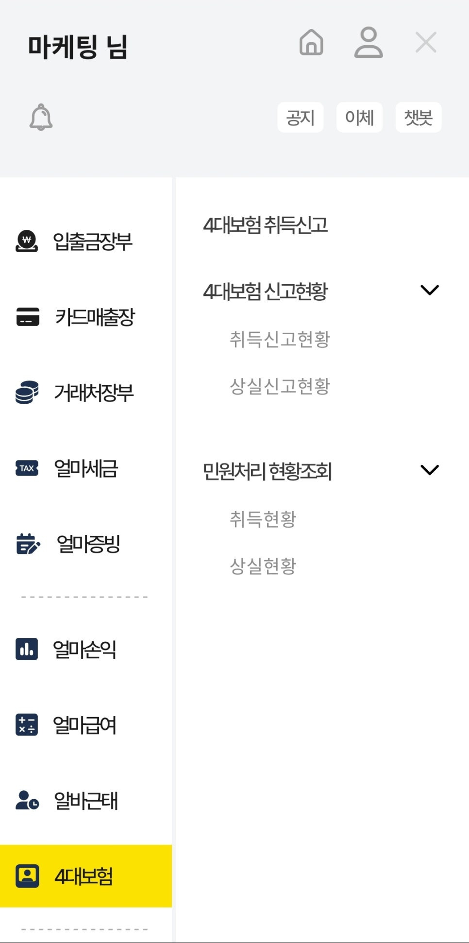아이퀘스트의 소상공인 전용 경영 플랫폼 [얼마] 4대보험 신고 기능
