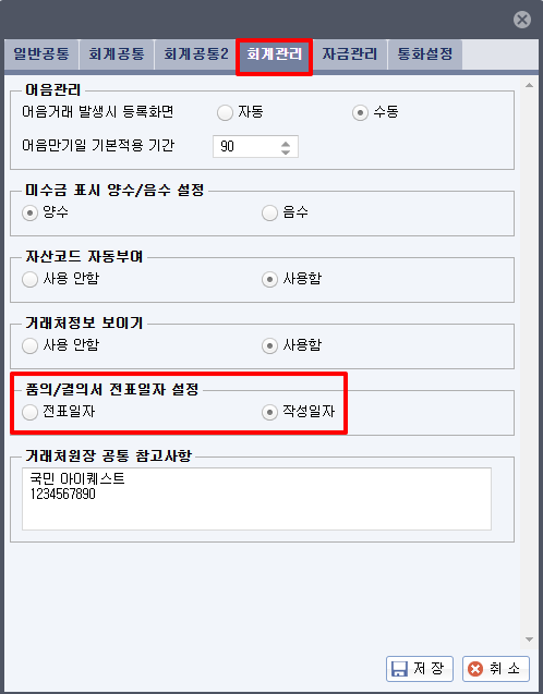 [환경설정][회계/자금][회계관리] 품의/결의서 전표일자 설정을 작성일자로 설정하면