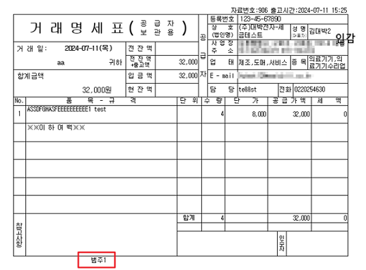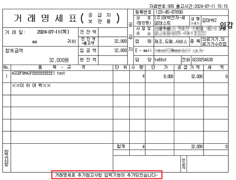 거래명세표 출력시 추가 참고사항 입력/출력 가능하도록 기능이 추가되었습니다.
