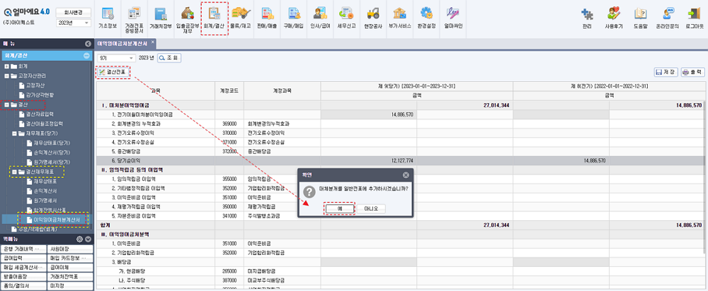 ※ 2023년 계정과목에 대한 금액 정리가 마무리되었다면,