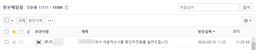 공급자의 받은메일함으로 공급받는자가 메일을 확인하였다는 메일이 수신됩니다.