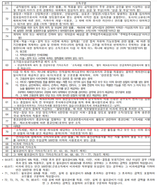 <소득세법 -별지 제23호 소득구분>