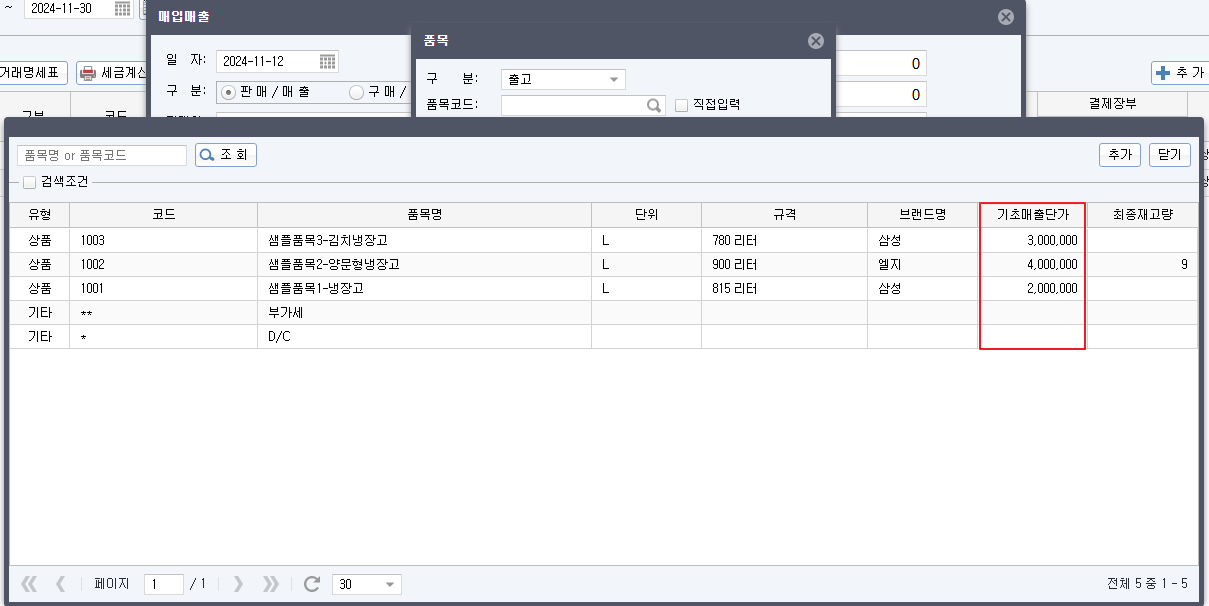 아래와 같이 매입단가는 확인 되지 않고 매출단가만 확인 하실 수 있습니다.