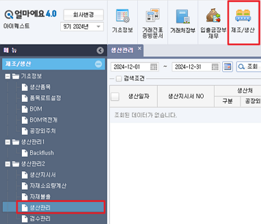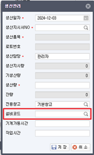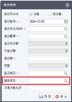 [제조/생산], [제조/생산 II]의 [생산관리]메뉴에서 생산관리내역 입력시 생산시 사용한 설비를 기록하고 싶으시다면,