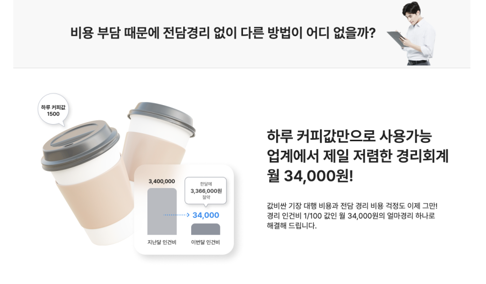 이 모든 걸 한달에 34,000원으로 해결할 수 있어요. 경리회계와 세무 업무에 들어가는 비용과 시간을 획기적으로 줄여보세요.