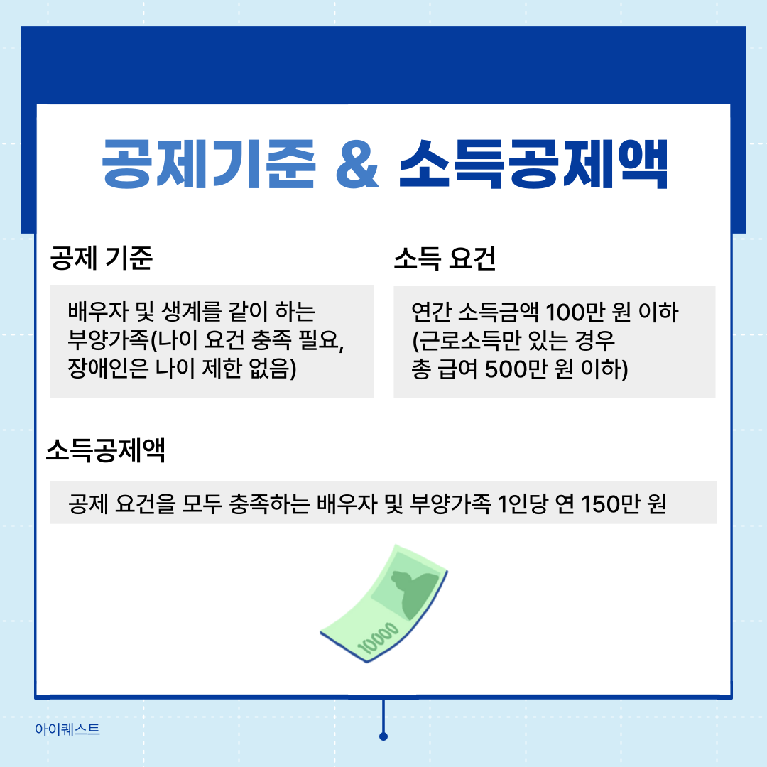 근로자의 배우자나 부양가족은 나이와 소득요건에 따라 인적공제를 적용하게 됩니다. 특히 소득 요건의 경우에는 근로자 본인을 제외한 모든 가족에게 따져보아야 하며, 소득의 종류 등에 따라 정확한 기준을 판단하는데 혼동이 있을 수 있으므로 안내드리는 내용을 참고하시기 바랍니다.