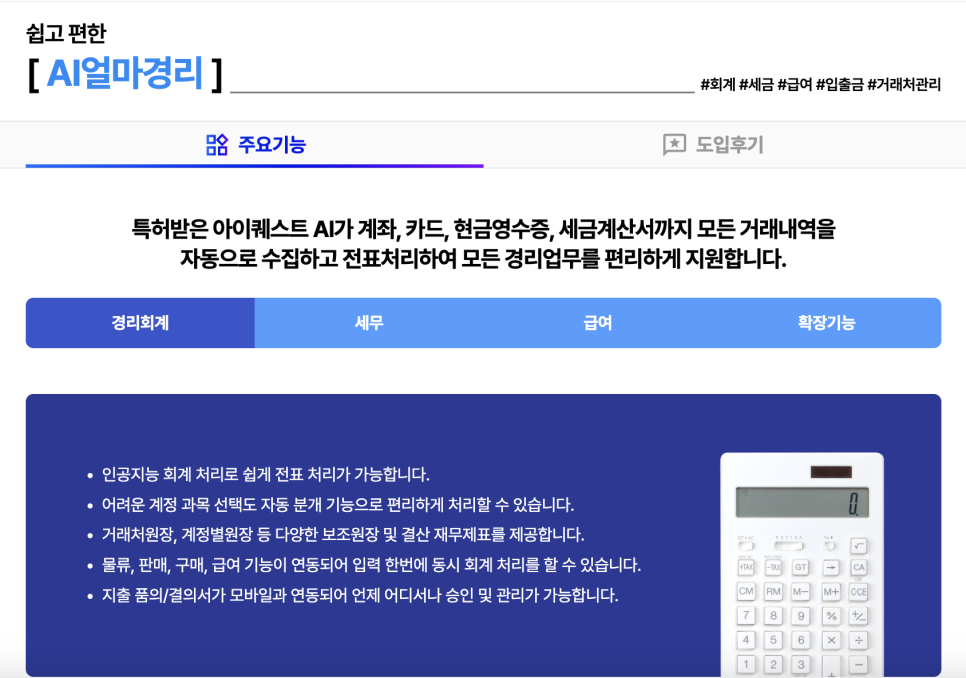 아이퀘스트 AI 경리회계 솔루션 [AI얼마경리]