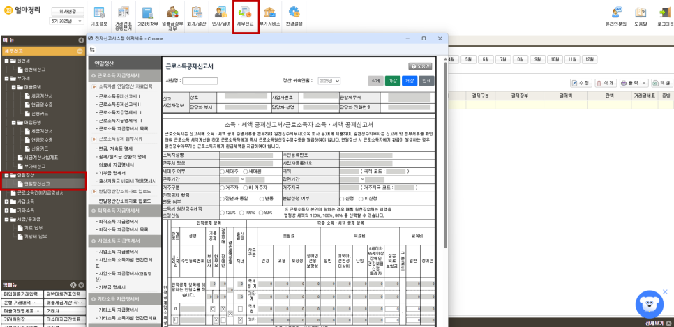 부가가치세, 원천세, 연말정산 등 주요 세무신고 기능을 모두 지원하는 'AI 얼마경리'는,