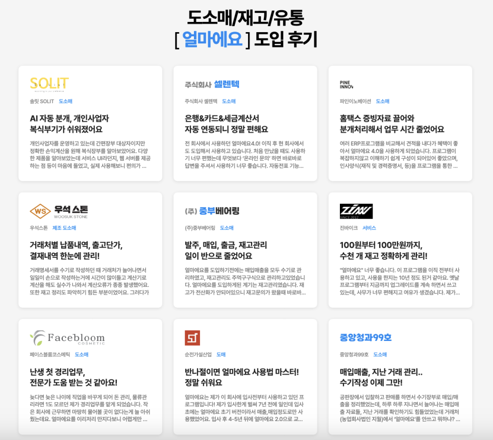 아이퀘스트 통합ERP 솔루션 [얼마메요ERP] 고객 후기