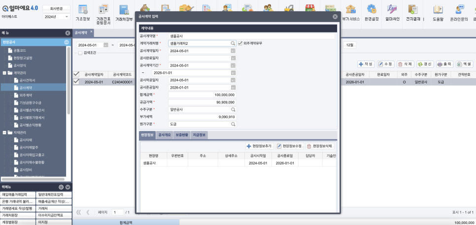 공사계약서 핵심 내용을 서면으로 요약하는 방법도 있지만, 그보다는 통합 시스템에 공사계약서 내용을 입력하여 공사 진행 현황과 함께 관리하는 게 훨씬 효율적입니다.