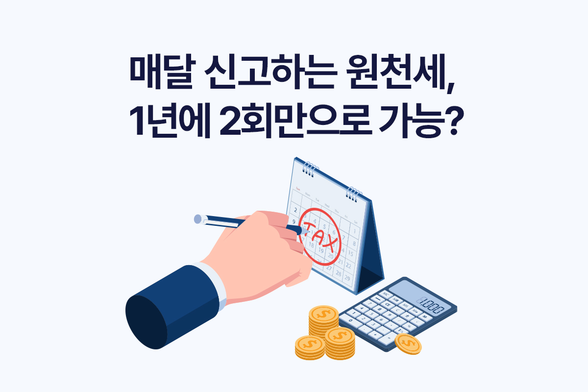 원천세를 매달 챙길 수 있으면 당연히 좋겠지만, 중소기업이나 소규모 사업자들의 경우 매달 원천세 신고하기 번거로울 뿐만 아니라 자금 운용에 부담이 될 수 있어요.
