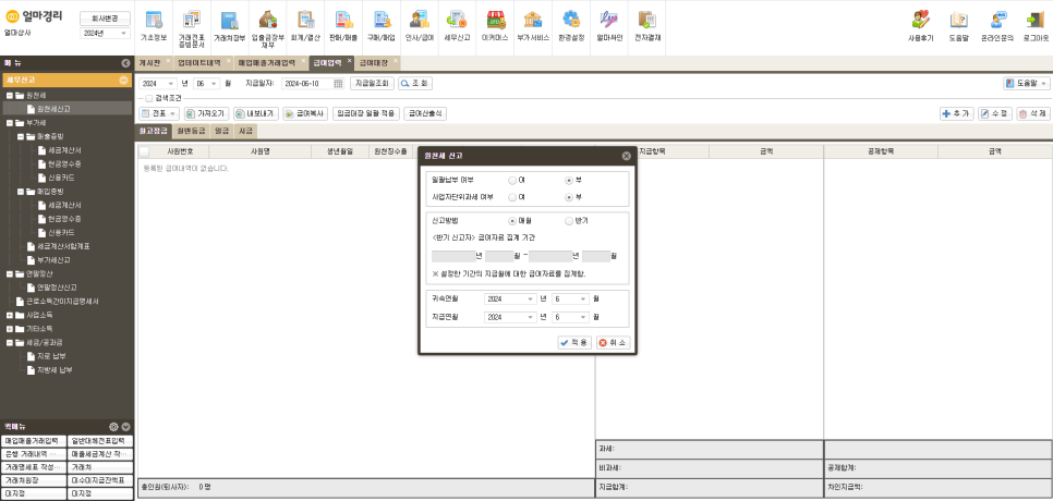- 상반기 원천세(1월~6월) : 당해 7월 10일까지