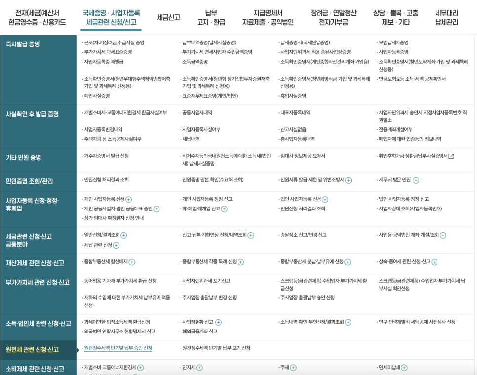 - 하반기 원천세(7월~12월) : 내년 1월 10일까지