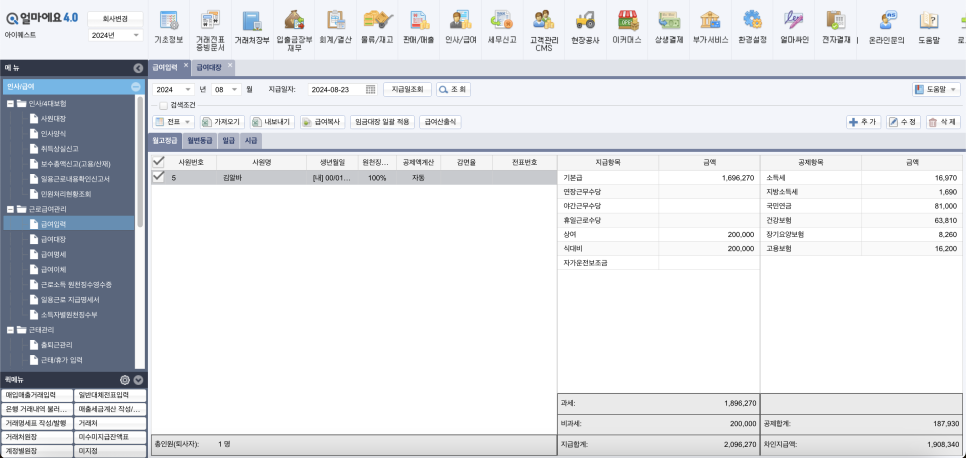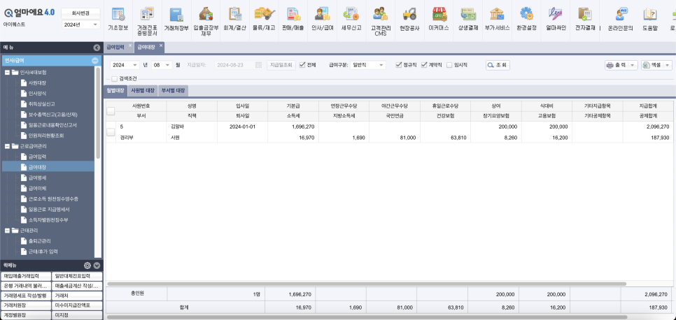 [얼마에요ERP]는 임직원 급여와 퇴직금까지 모든 급여를 지급하고 그 내역을 저장할 수 있어요. 또한 매년 바뀌는 세법에 따라 세율이 자동으로 업데이트 되어서 세무 실수를 크게 줄일 수 있어요.