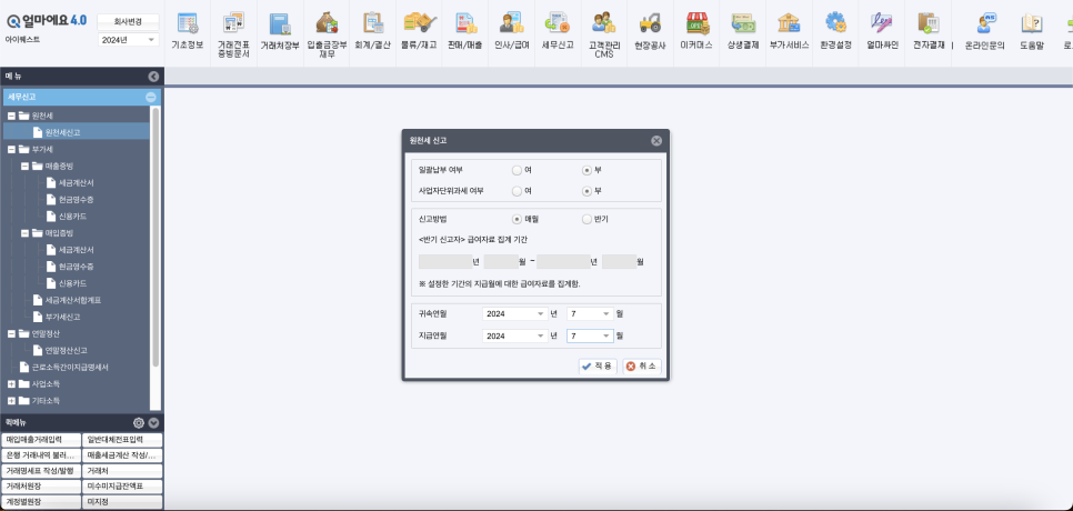ERP 솔루션을 쓰는 기업이라면 ERP 솔루션에서 원천시 신고 자료를 작성해서 제출할 수 있어요.