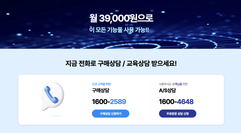 아래 배너 클릭 후 '제품상담'을 신청하시면 도입 및 혜택 안내를 1:1로 받아보실 수 있습니다.