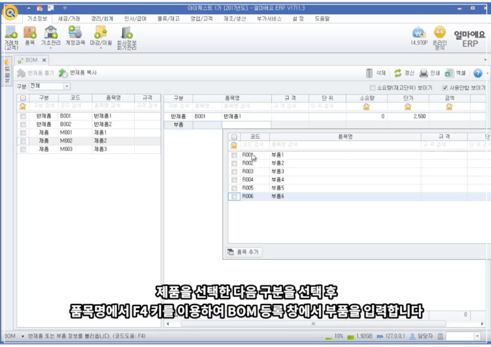 아이퀘스트 [얼마에요 ERP]로 자재명세서(BOM)를 관리하면, 모든 제조/생산 과정을 정확하고 간편하게 계산하여 문제없이 관리할 수 있습니다.