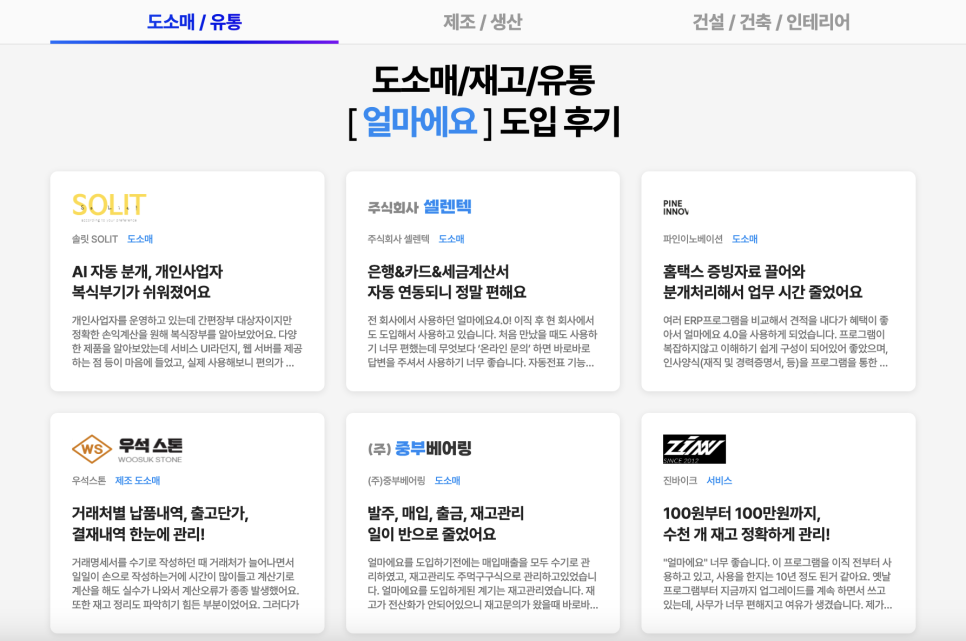 [얼마에요ERP] 고객사 후기