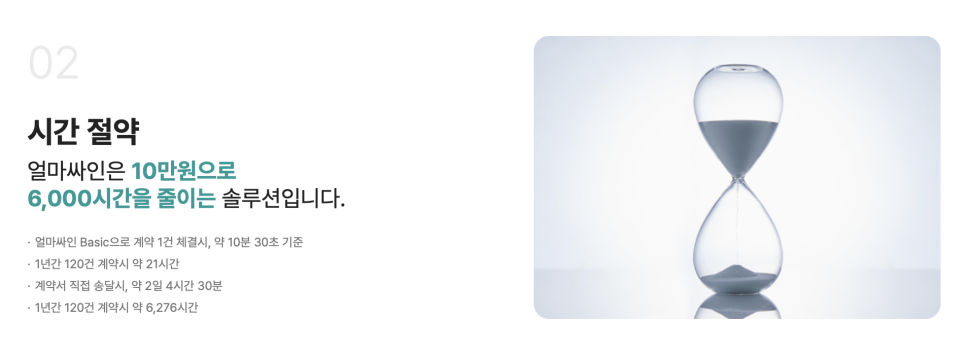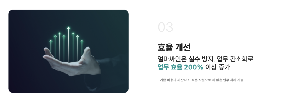 지금 바로 [얼마싸인]으로 여러분의 기업의 업무 비용과 시간을 절약하고 생산성을 높여 새로운 성장 모멘텀을 만들어 보세요.