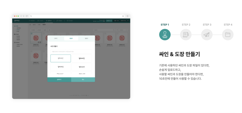기존에 사용하던 도장이나 서명 파일이 있다면 [얼마싸인]에 등록하여 사용할 수 있으며, [얼마싸인]에서 서명을 직접 만들 수도 있습니다.