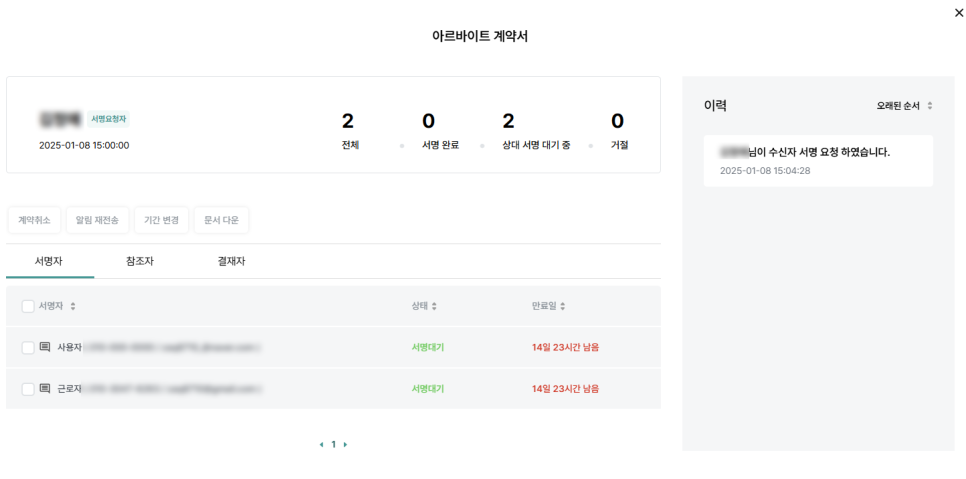 이후 계약 진행 상황은 ‘얼마싸인 > 계약 보관함’에서 실시간으로 확인이 가능합니다.