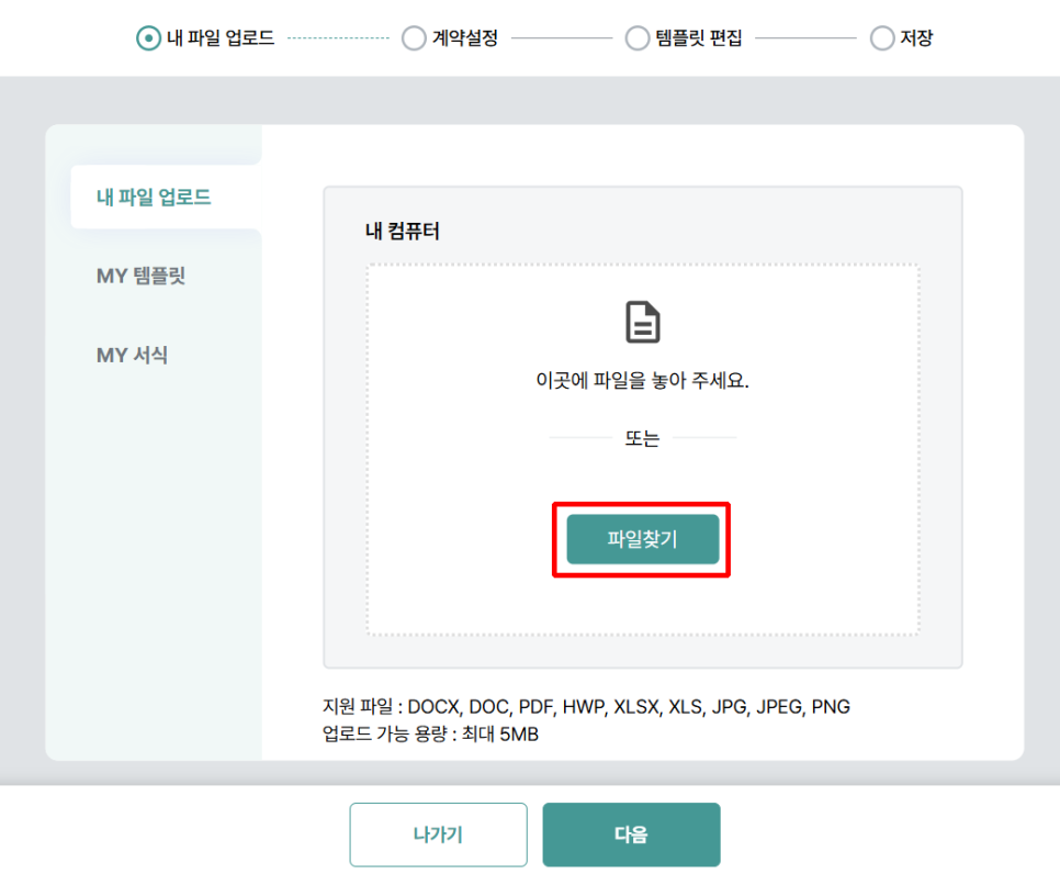 STEP 03. 문서 설정 : ‘문서명’, ‘서명진행 방법’ 등을 결정하여 선택