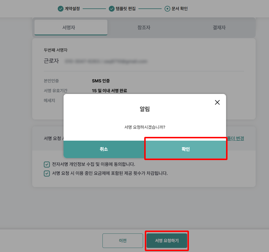 STEP 06. 문서 확인 후 서명 요청하기 클릭