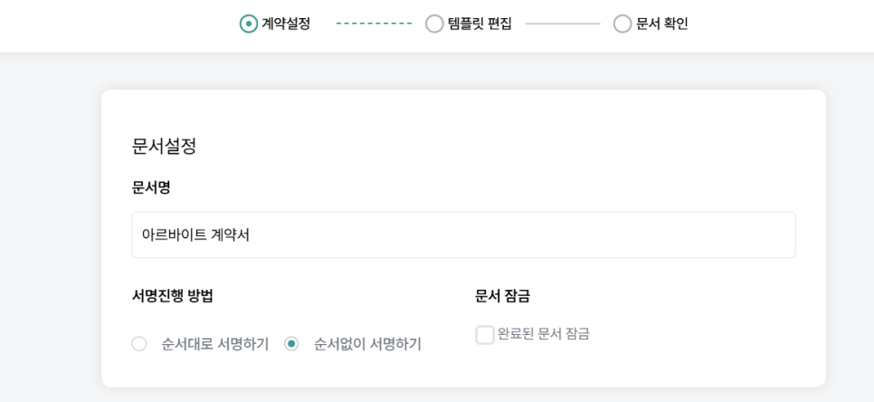 STEP 03. 문서 설정 : ‘문서명’, ‘서명진행 방법’ 등을 결정하여 선택