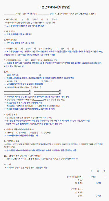 - 법적 요건 준수 : 근로계약서는 근로기준법에 따라 작성되어야 합니다.