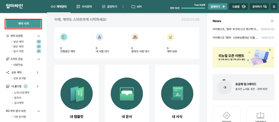 이제 복잡한 계약 업무, 얼마싸인으로 스마트하게 시작하셔서 업무 효율을 높여보세요.