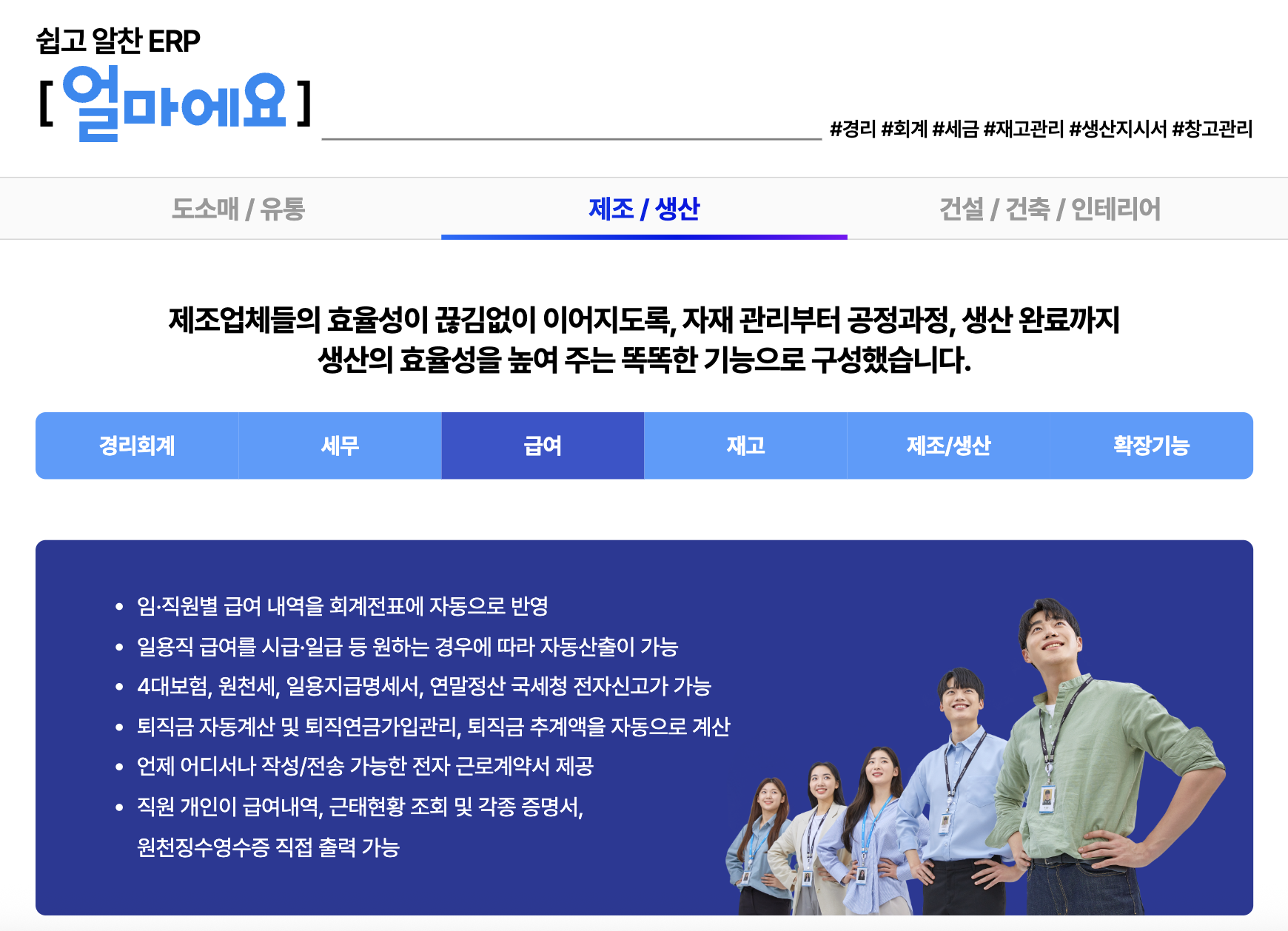 4. 제조업 ERP [얼마에요ERP]로 인건비 절세와 효율을 한 번에 잡아요.
