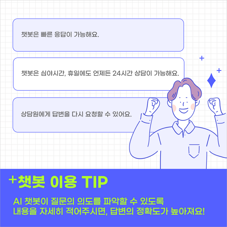 시간에 관계 없이 질문하고 답변 받을 수 있는 챗봇이 있어 편리합니다!
