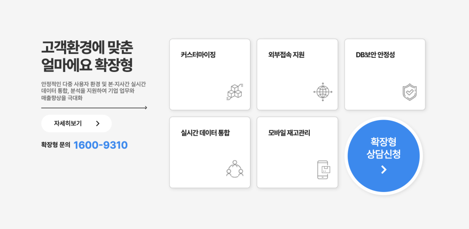 고객사의 경영 환경에 맞춰서 [얼마에요 ERP]의 다양한 기능들을 커스터마이징할 수 있으며, 외부에서도 안정적으로 [얼마에요 ERP]를 사용할 수 있도록 안정적인 시스템과 데이터 보안 기능을 제공합니다.