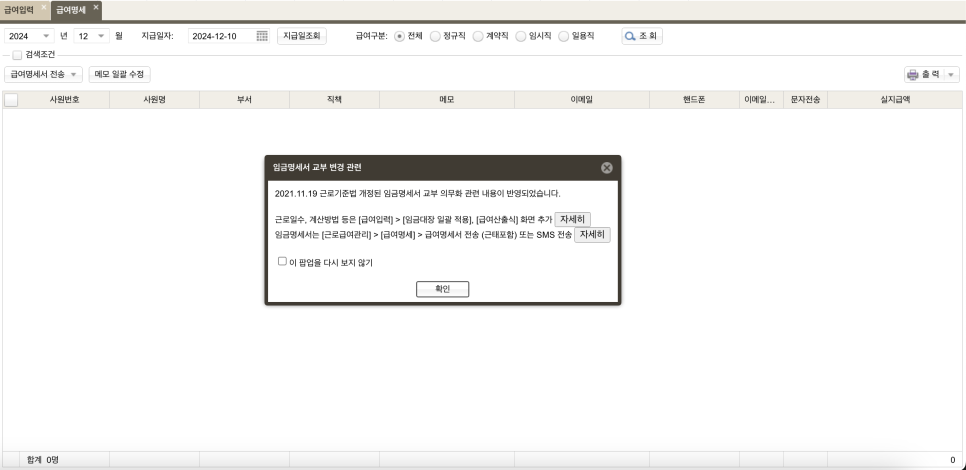 아이퀘스트 AI 경리회계 솔루션 [얼마경리] 급여 지급 화면