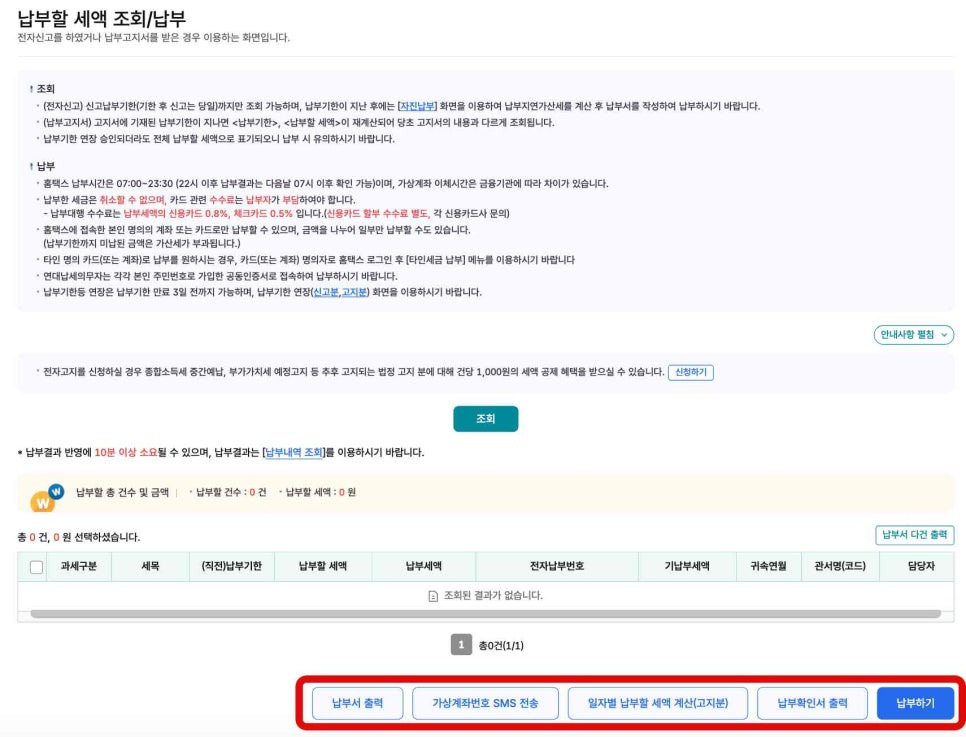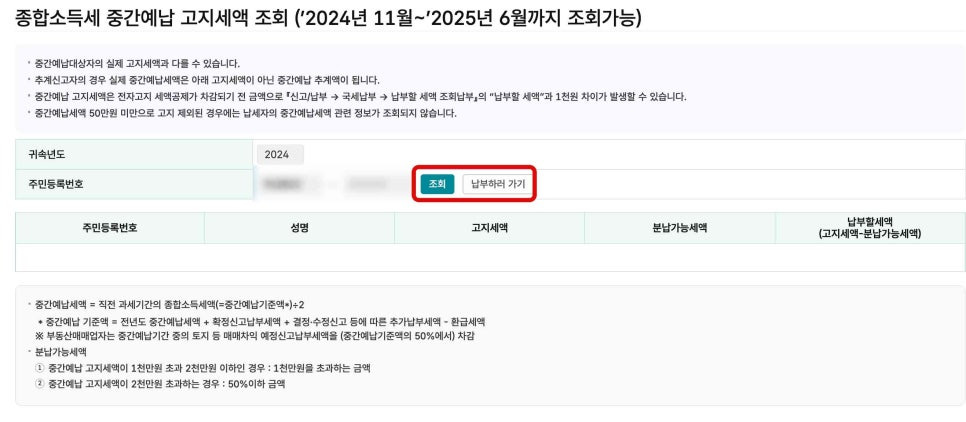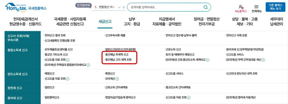 홈택스 종합소득세 중간예납 고지세액 확인하기
