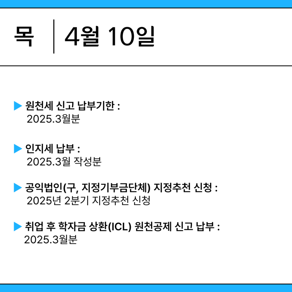 ▶원천세 신고 납부기한 : 2025.3월분