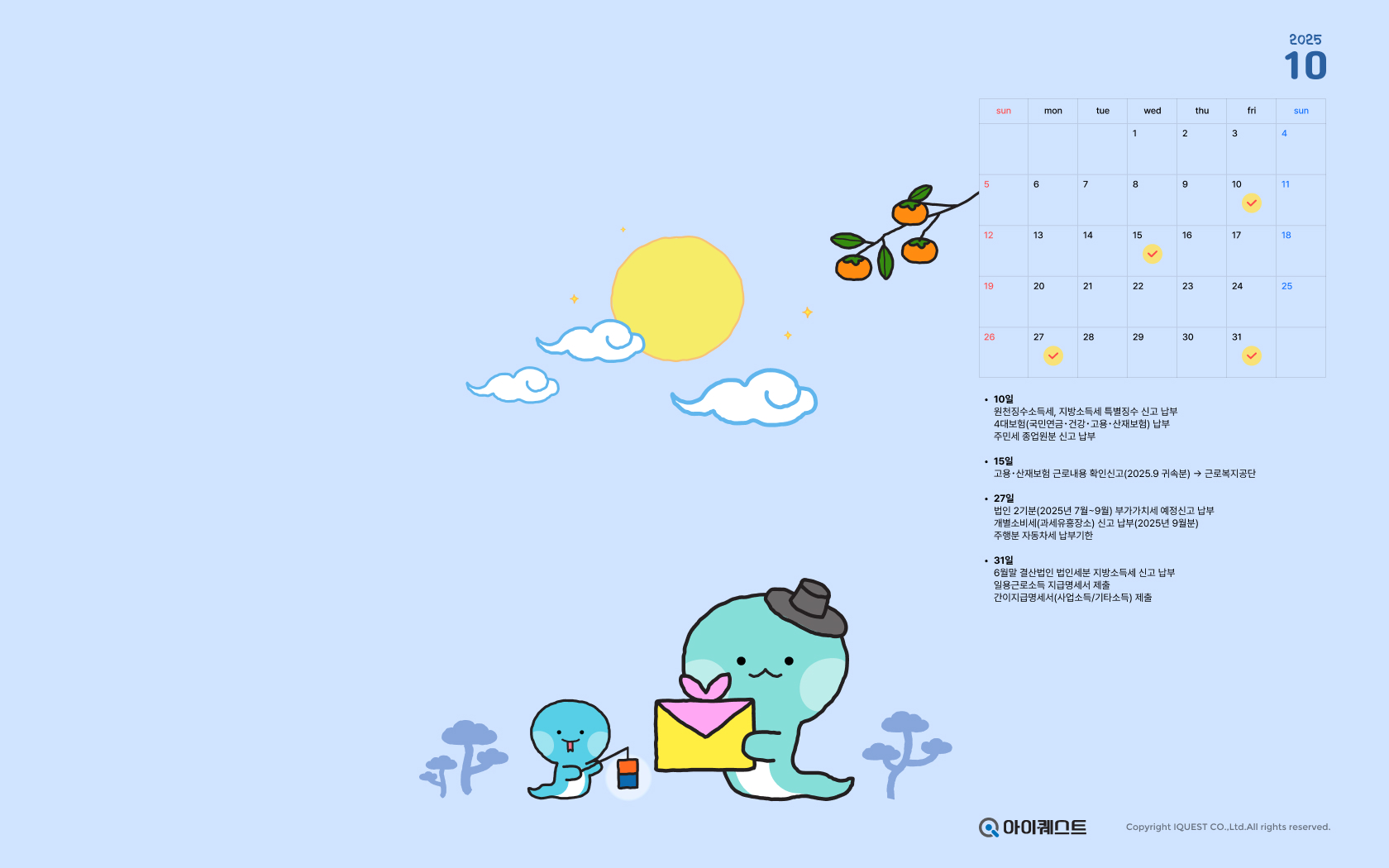 [아이퀘스트] 2025년 10월 세무일정 월페이퍼