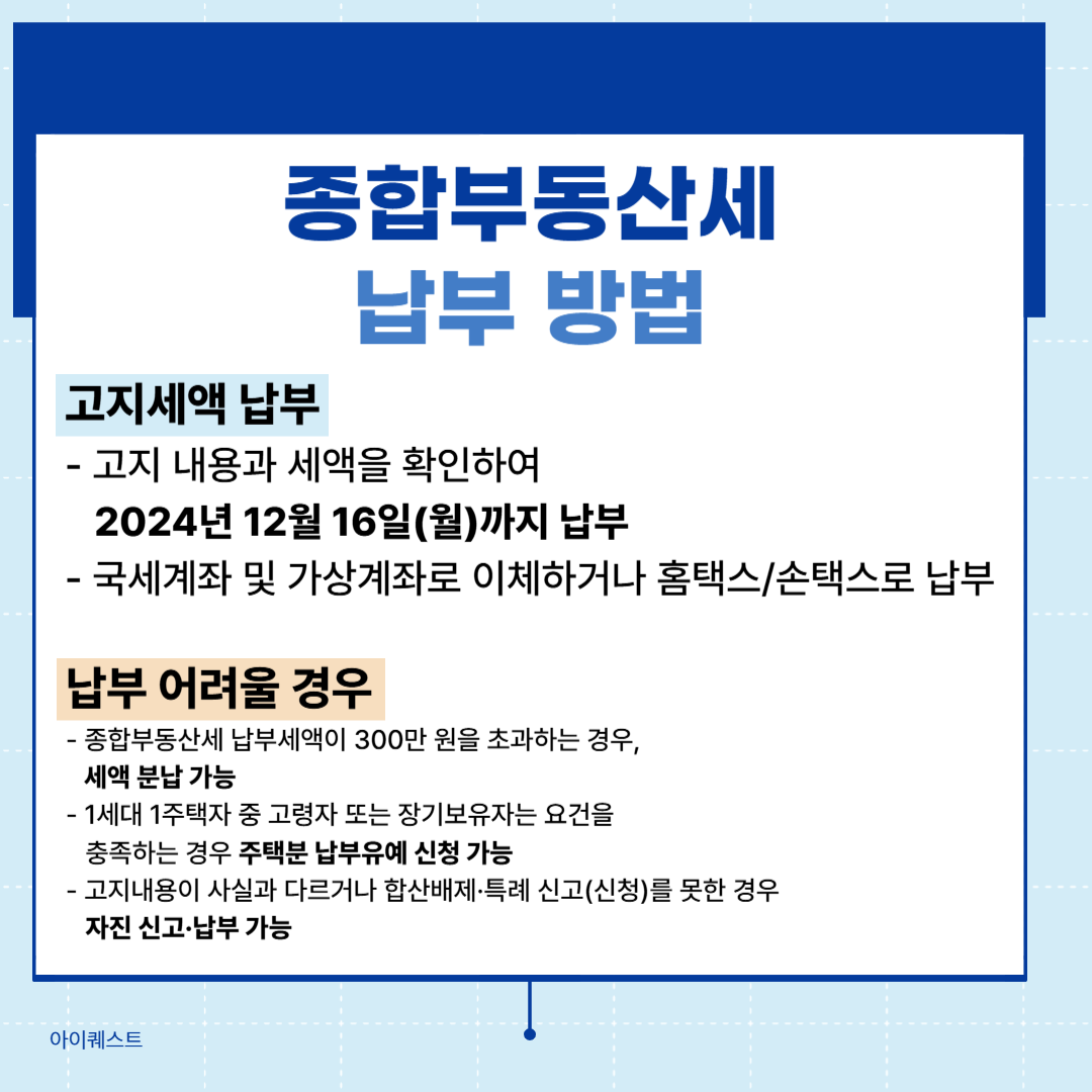 오늘은 종합부동산세 고지 세액 납부에 대해 안내드리겠습니다.
