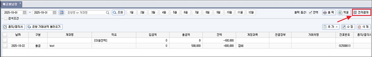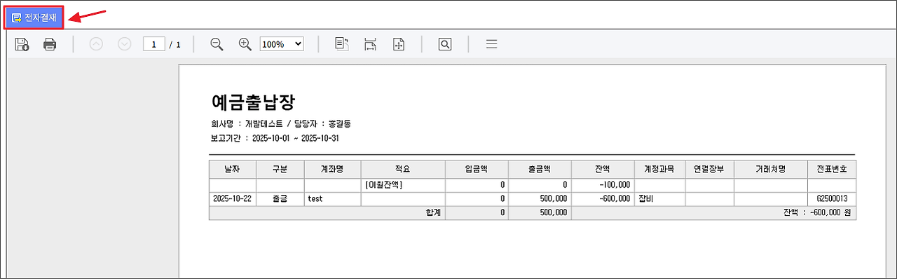 [입출금장부/재무] 메뉴에서 보고서 전자결재 처리가 가능합니다.