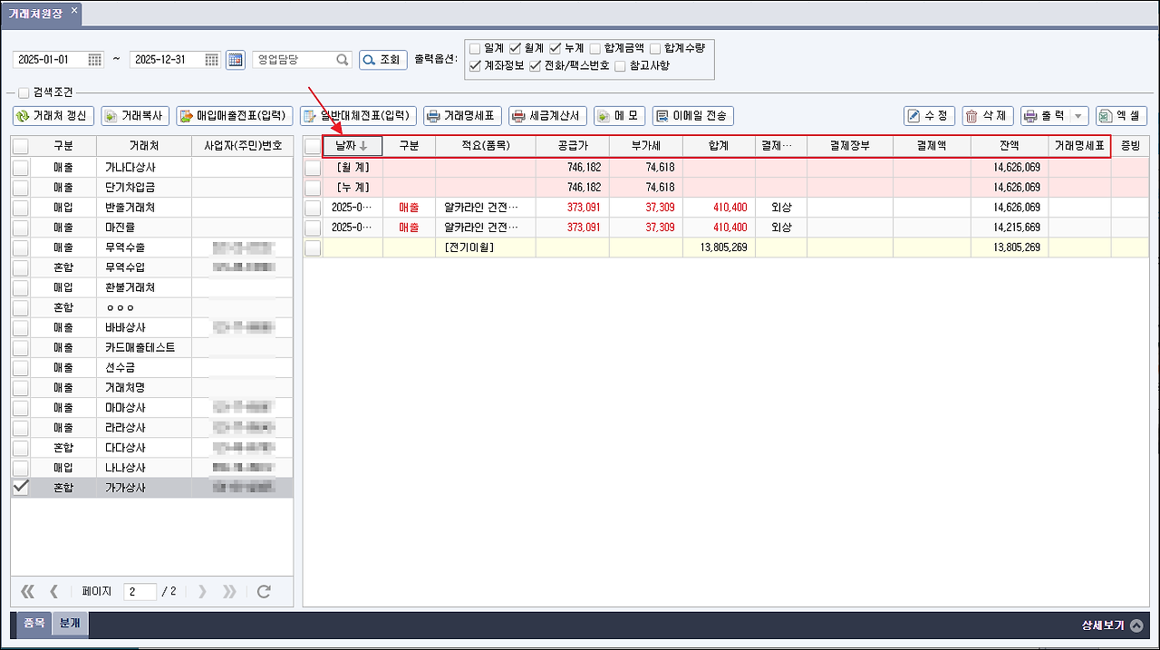 [거래처원장] 메뉴에 정렬순서 초기화 기능이 추가되었습니다.
