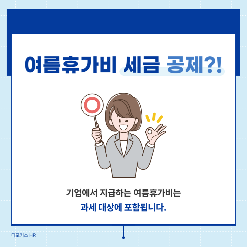 회사 내규에 따라 다르겠지만, 위 조사 결과처럼 여름휴가비를 지급 예정인 기업의 담당자 혹은 사업자, 근로자분들이라면 여름휴가비 세금 공제 여부 관련해 궁금하실 수 있을 것 같은데요.