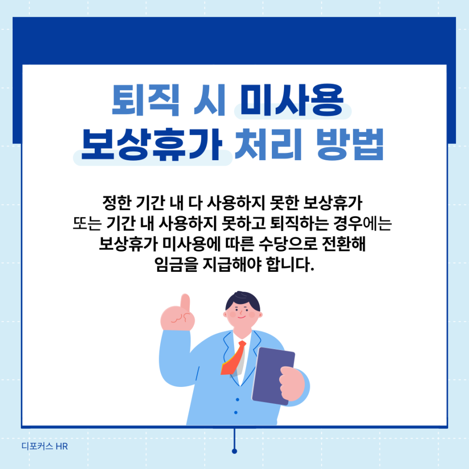 4. 퇴직 시 미사용 보상휴가수당 처리 방법은?