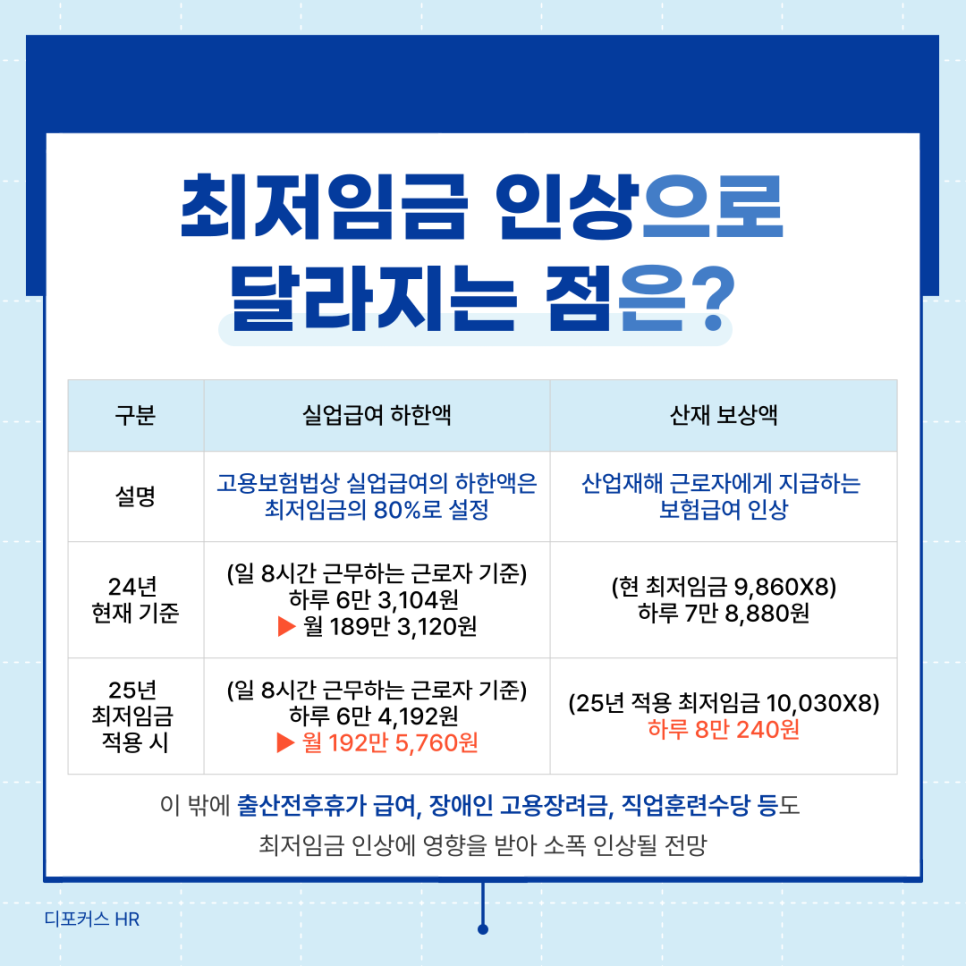 2025년 최저임금 인상으로 달라지는 부분은 아래와 같습니다.