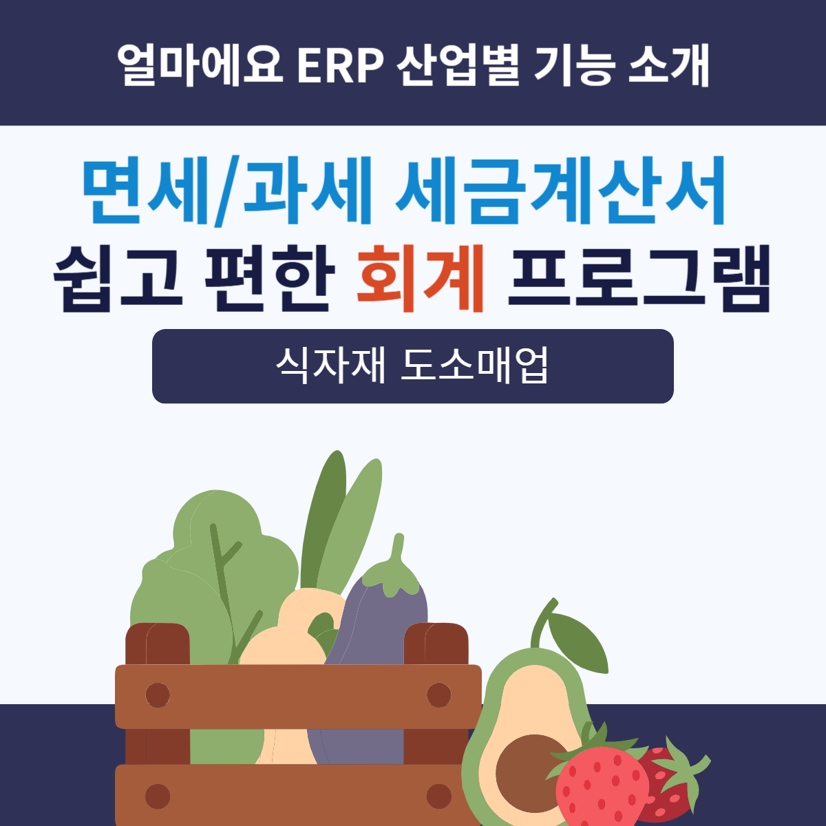 이제는 정말 얼마 남지 않은 2024년! 아래와 같은 고민을 하고 계신 도소매 업종 종사자분들이라면 지금 이 글을 주목해 주시길 바랍니다. 시중에 나온 수많은 회계 프로그램 중 우리 회사에 잘 맞는 프로그램 있을까요?도소매업종에 잘 맞는 회계프로그램 추천해주세요! [AI 얼마경리] 를 사용하고 계신 도소매업 고객사분들, 그중에서도 식자재 도소매업에 종사하고 계신 고객사분들의 사례를 토대로 쉽고 편한 회계 프로그램을 소개해 드리겠습니다. 식자재 도소매업에서 회계 프로그램을 사용해야 하는 이유의류, 가구 등 다양한 제품군을 취급하는 일반 도소매업과는 달리 식자재 도소매업에서는 주로 음식 재료, 농산물 등 식품을 취급합니다. 이러한 식자재는 면세 품목과 과세 품목이 혼합되어 있기에 세금 계산에 주의가 필요..
