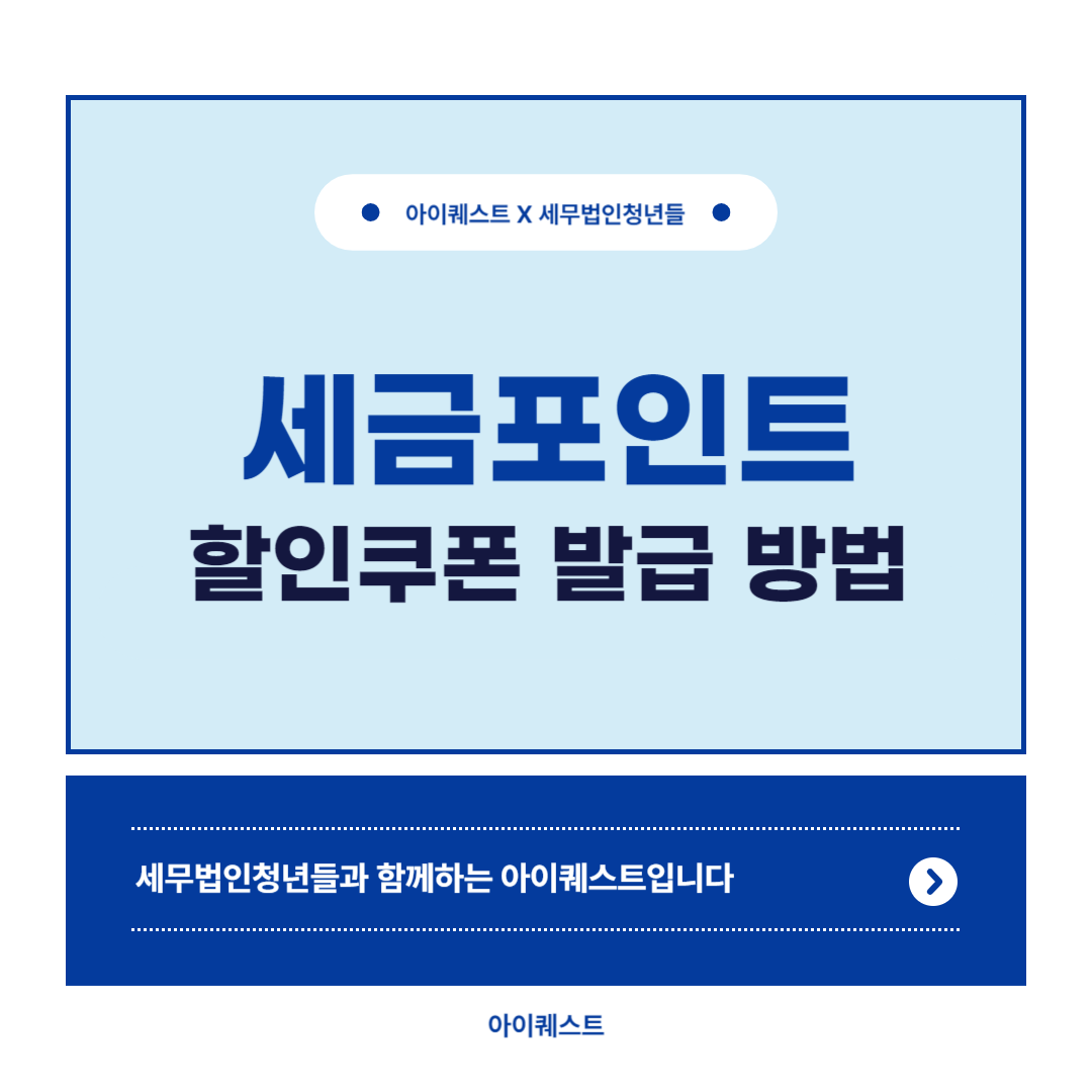 안녕하세요.세무법인청년들과 함께하는 아이퀘스트입니다.​​오늘은 세금포인트 영화 예매 방법에 대해 안내드리겠습니다.​ ​ 세금포인트 국세청은 성실한 납세자를 위하여 다양한 납세 지원을 하고 있으며, 세금포인트 등의 제도로 혜택을 제공하고 있습니다. 세금포인트란 개인 또는 법인이 납세한 국세에 대하여 부여되는 포인트로, 납세자는 세금포인트를 사용하여 담보를 면제받거나 재산 매각을 유예받을 수 있습니다. 또한 중소기업 제품을 할인받아 구매하거나 국립 박물관·수목원·생태원·휴양림 등을 이용할 수도 있습니다.​특히 10월 8일부터는 민간기업 최초로 CGV와 국세청이 업무 협약을 체결하여 세금포인트 사용처가 더욱 확대되었습니다. 납세자는 세금포인트 2점으로 전국 193개 영화관에서 영화 관람료를 2천원 할인 받을 ..